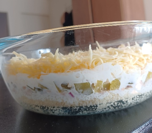 Sałataka dobra na każdą okazje! Swięta, urodziny a i bez okazj można. U nas zawsze w towarzystwie kiełbaski pieczonej w piekarniku. Najlepiej zawsze smakuje na drugi dzień.
